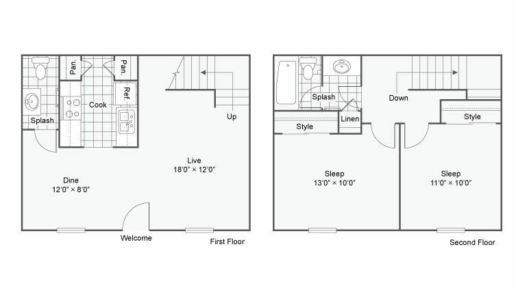 Modelo de apartamento: The Hallman: 2 Bedroom 1.5 Bath TH2 Dormitorios, 1.5 Baños, 931 sq ftDisponible Ahora![]()