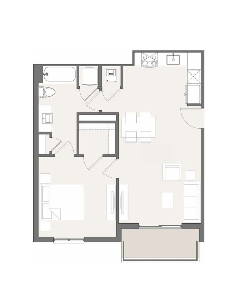 1 Dormitorio, 1 Baño, 656 pies²Disponible AhoraGalería del Modelo