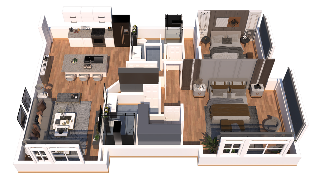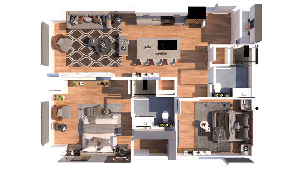 2 Dormitorios, 2 Baños, 941 pies²Disponible Jun 12, 2026Galería del Modelo
