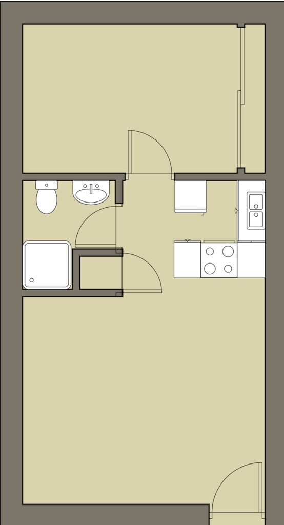 1 Dormitorio, 1 Baño, 480 pies²Disponible AhoraGalería del Modelo