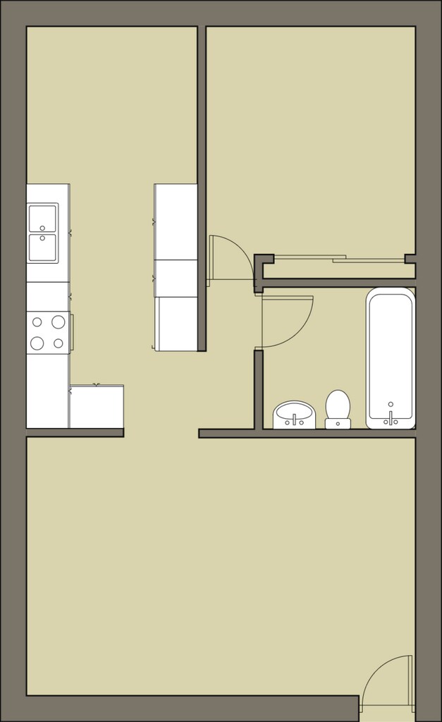 1 Dormitorio, 1 Baño, 640 pies²Disponible AhoraEl más grandeEsta opción tiene las unidades más grandes para este modeloGalería del Modelo