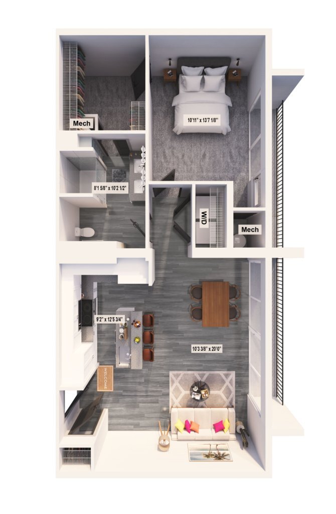 1 Dormitorio, 1 Baño, 720-750 pies²Disponible AhoraGalería del Modelo