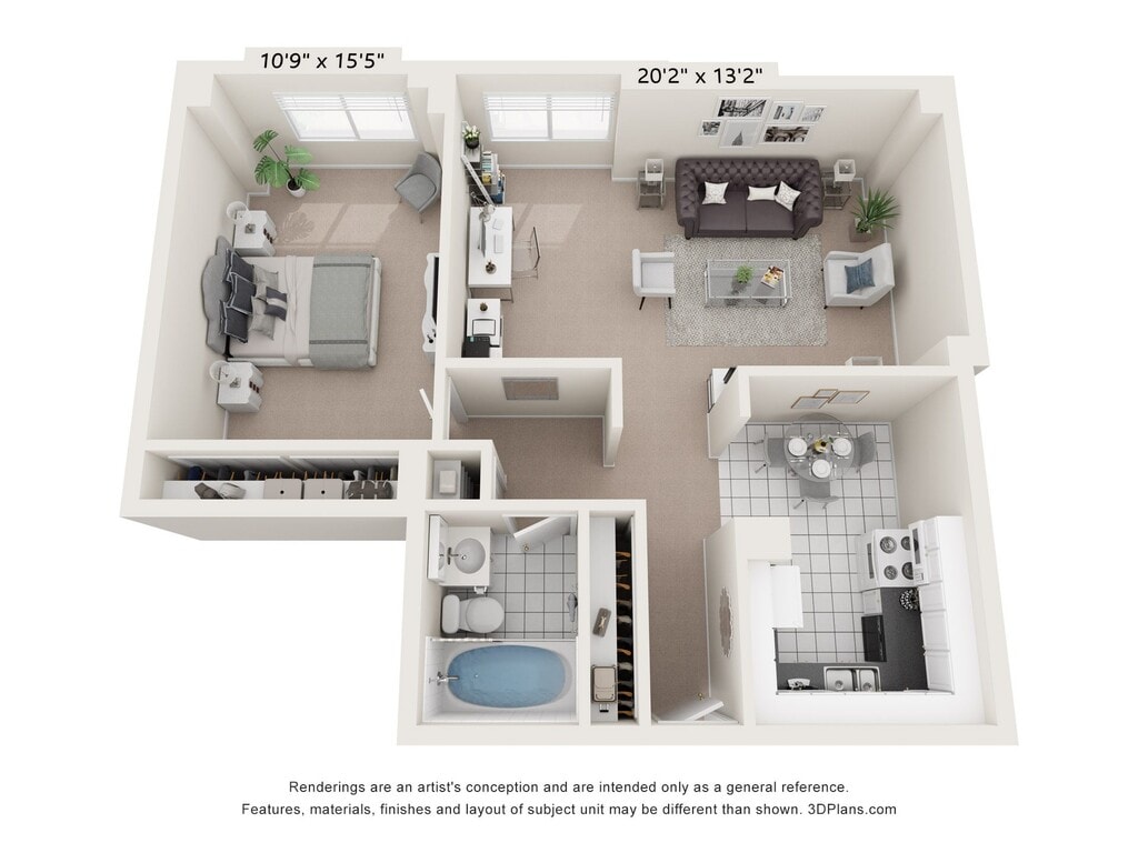1 Dormitorio, 1 Baño, 850 pies²Disponible AhoraGalería del Modelo