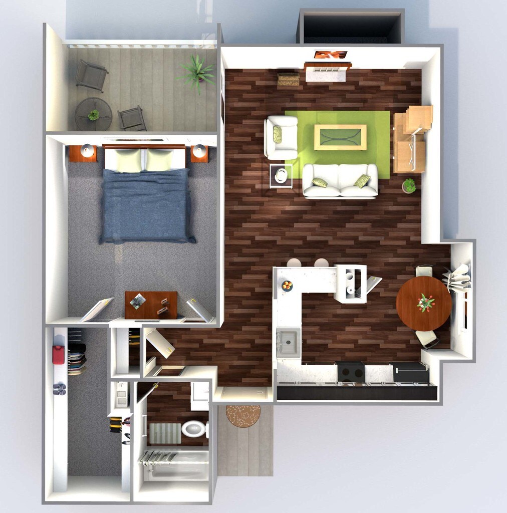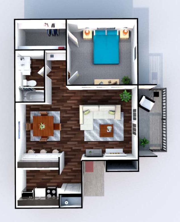 1 Dormitorio, 1 Baño, 729 pies²Disponible AhoraGalería del Modelo