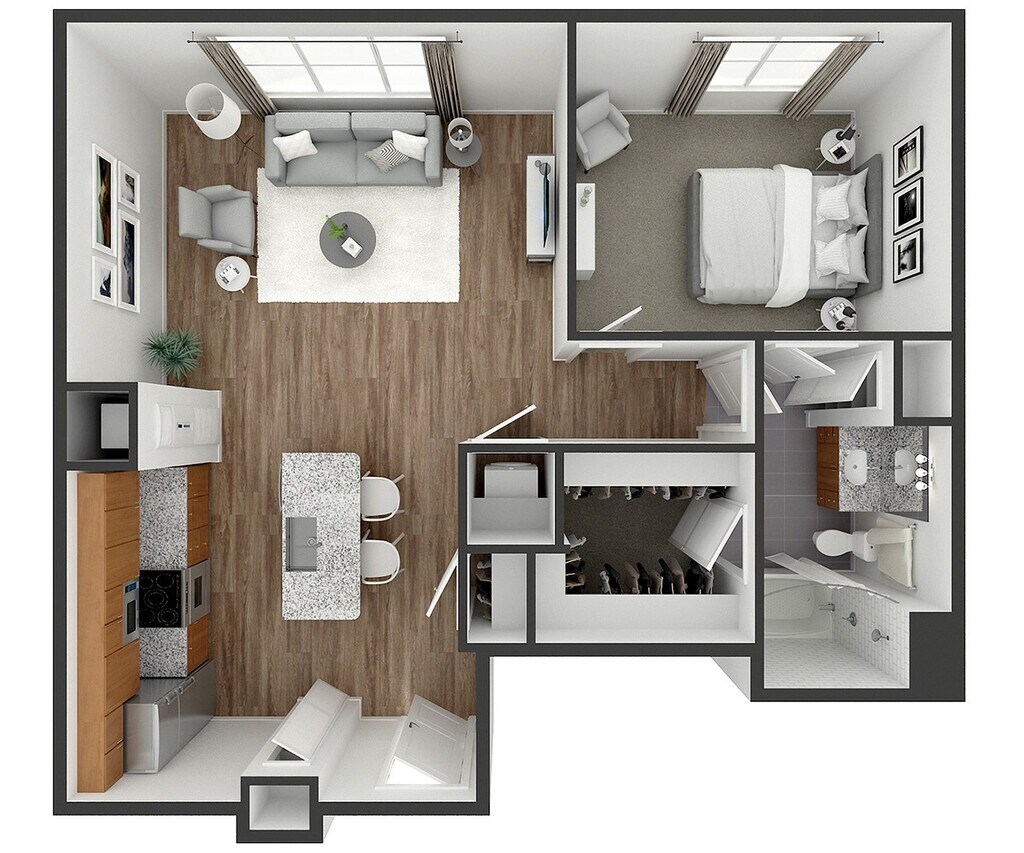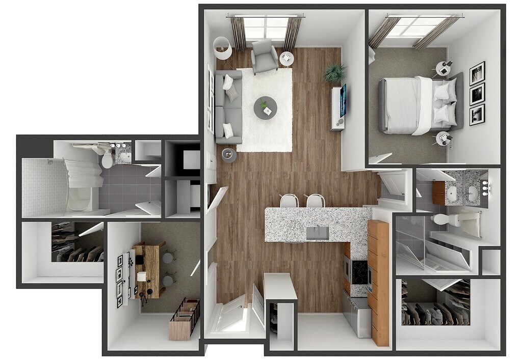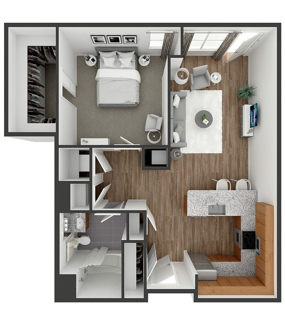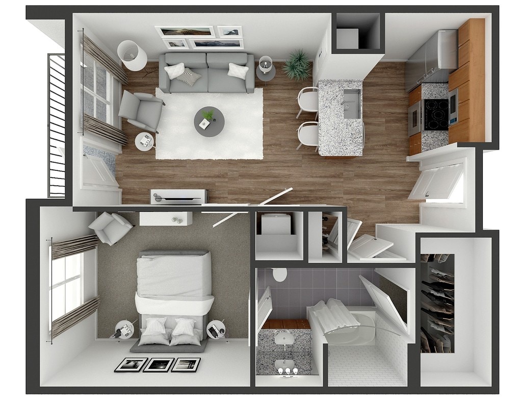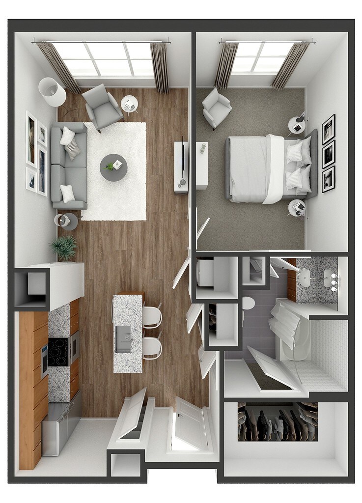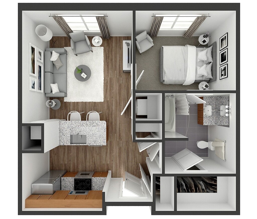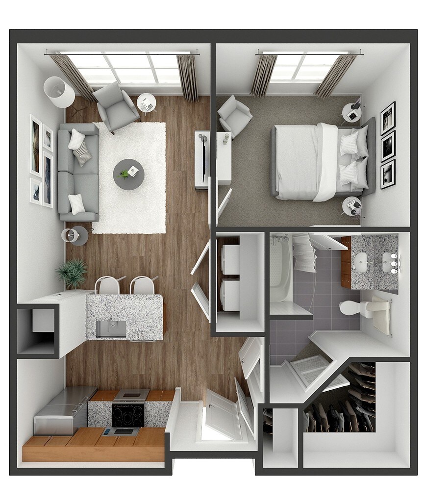 1 Dormitorio, 1 Baño, 700 pies²Disponible AhoraGalería del Modelo