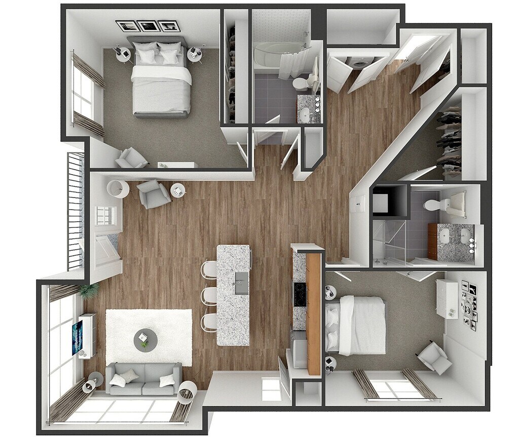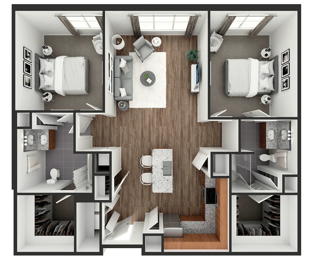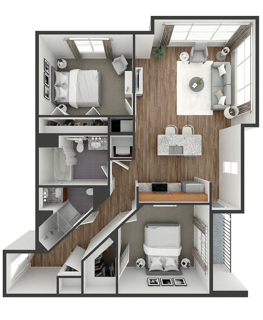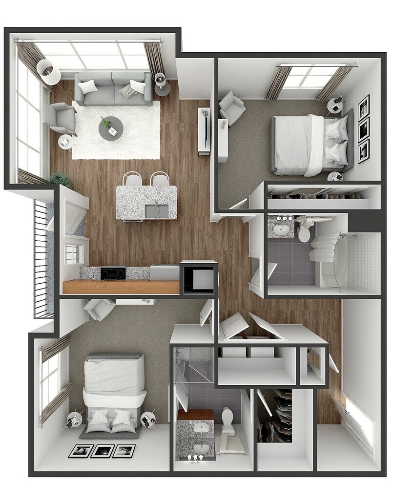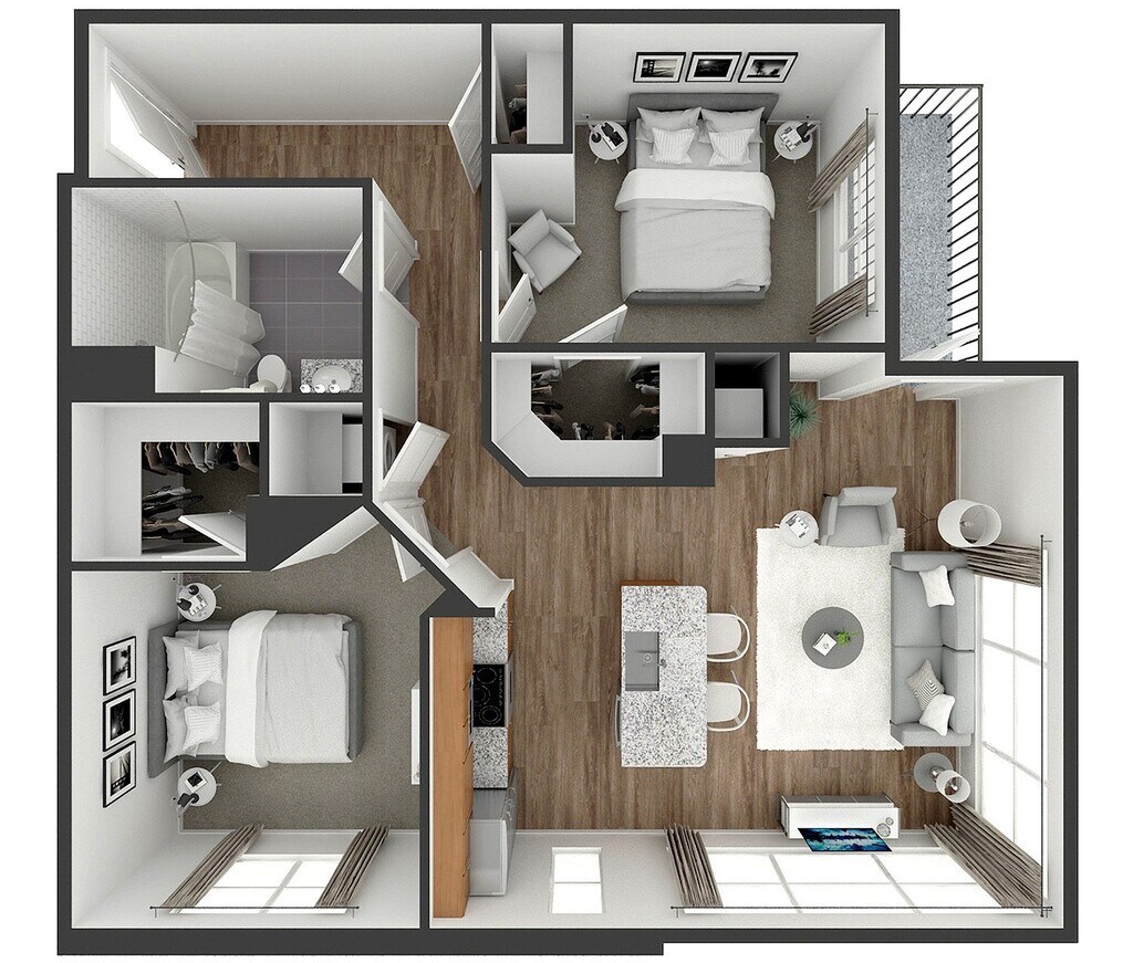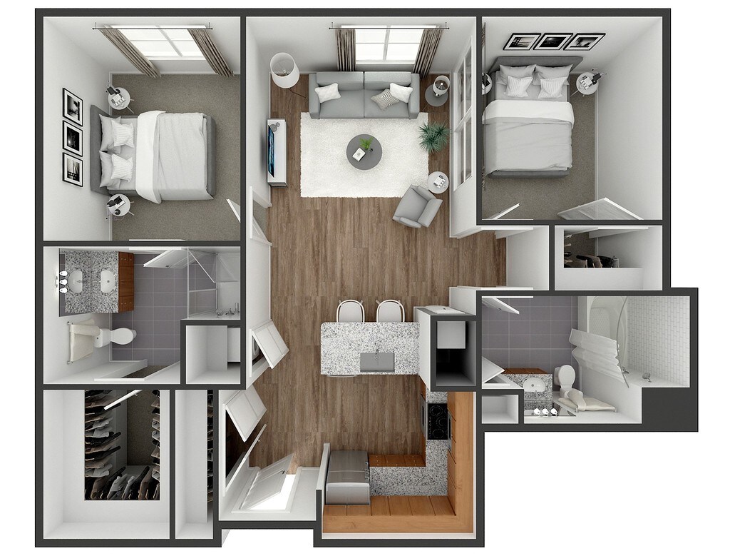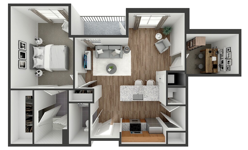 1 Dormitorio, 1 Baño, 700 pies²Disponible AhoraGalería del Modelo