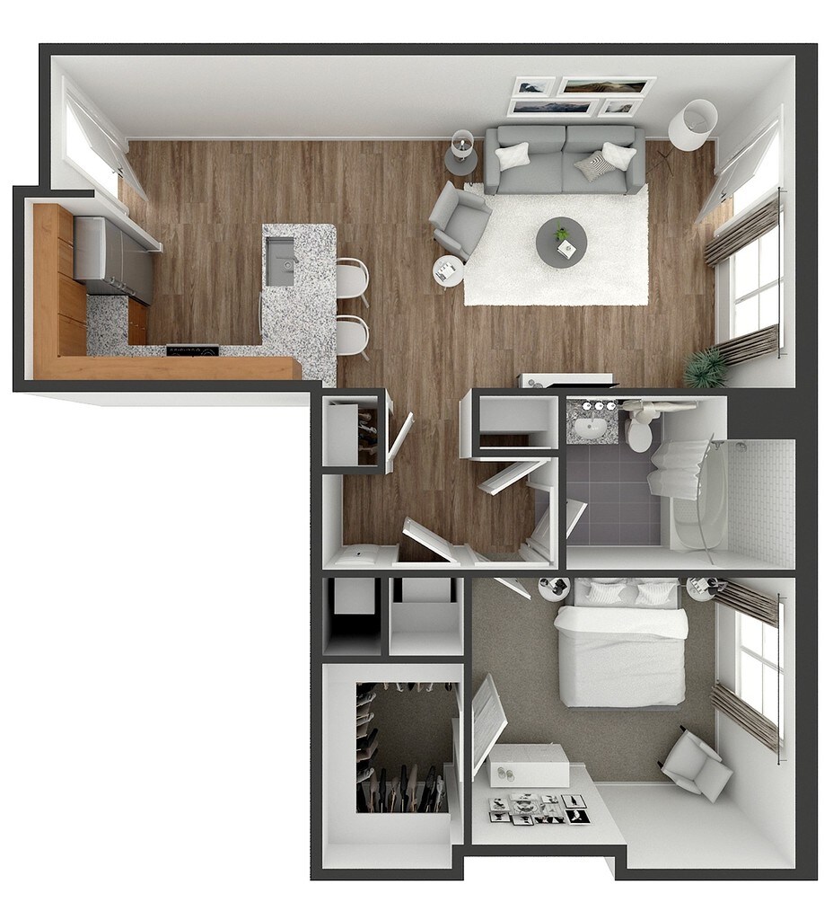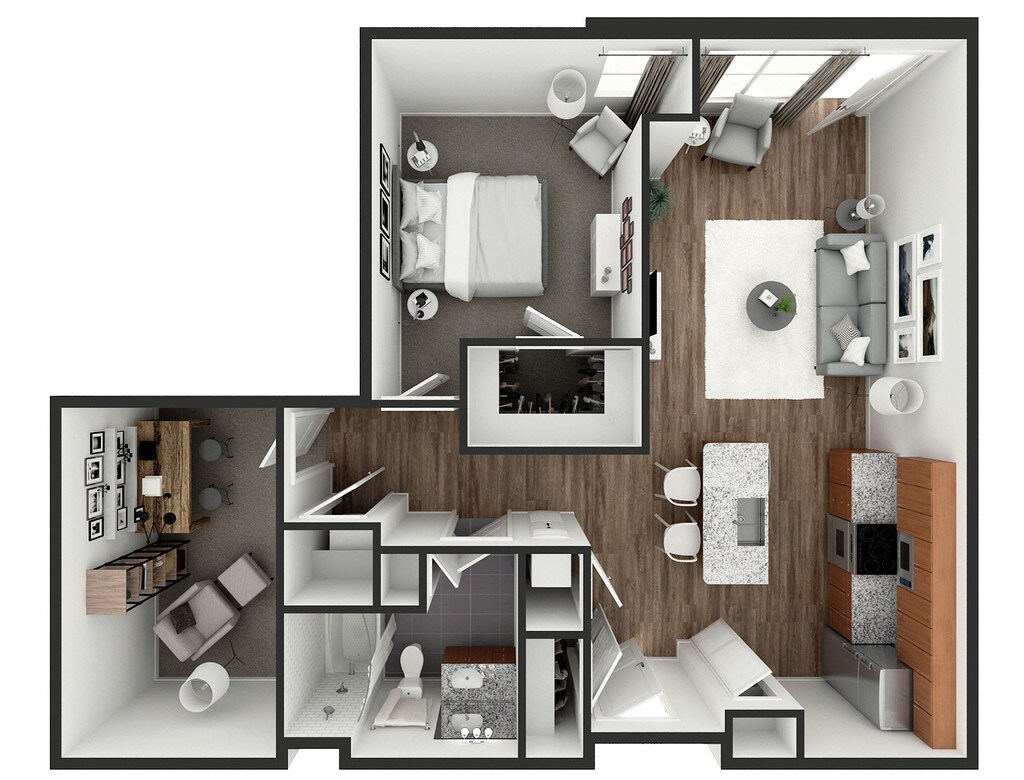 Modelo de apartamento: Mulberry Small1 Dormitorio, 1 Baño, 700 sq ftDisponible Ahora![]()