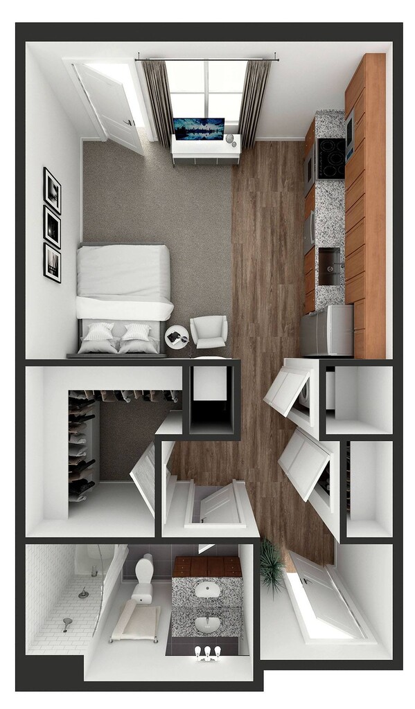 Estudio, 1 Baño, 634 pies²Galería del Modelo