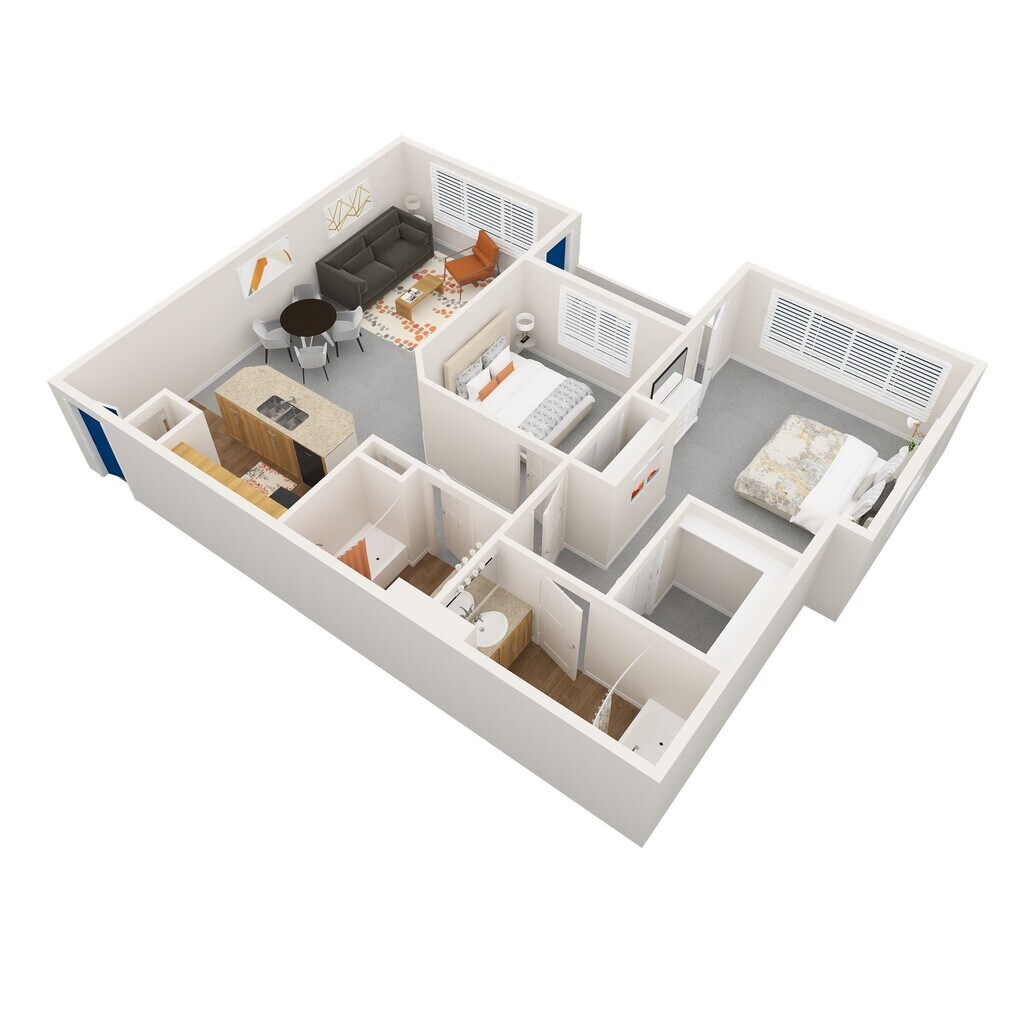 Modelo de apartamento: BuffaloLlame para Precios2 Dormitorios, 3 Baños, sq ftNo DisponibleBuffalo - Plano 1 3 Dormitorios