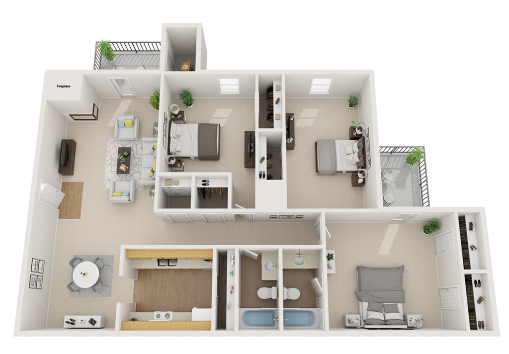 Modelo de apartamento: The TimberLlame para Precios3 Dormitorios, 2 Baños, 1150 sq ftNo Disponible![]()