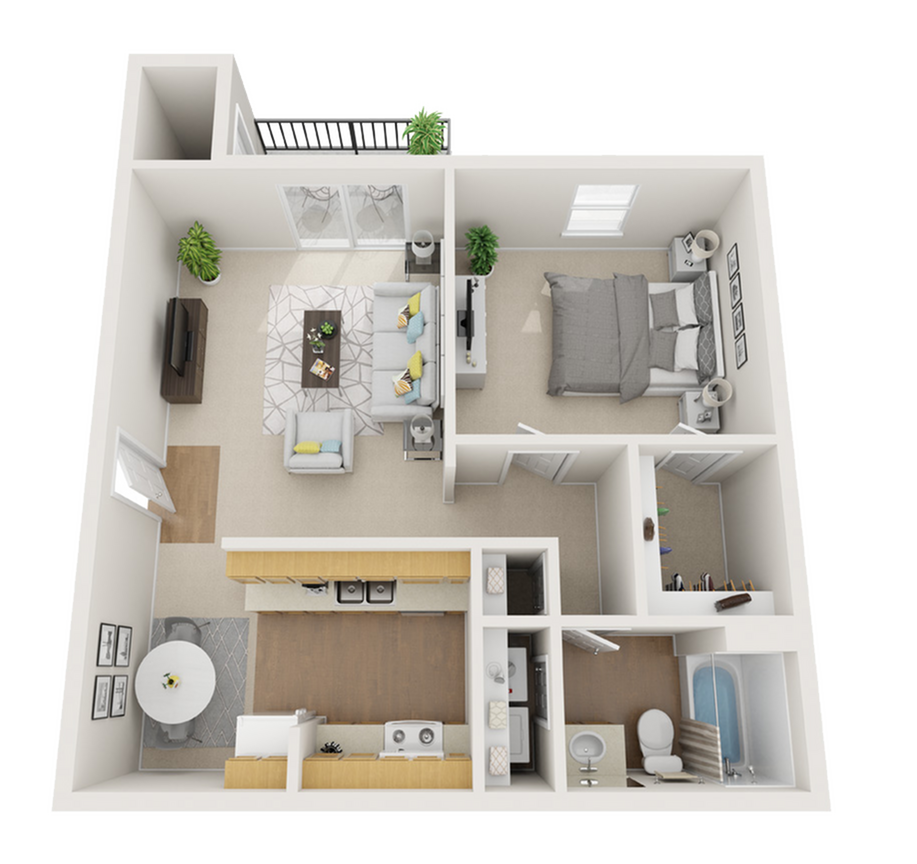 Modelo de apartamento: The Ozark$8501 Dormitorio, 1 Baño, 765 sq ftDisponible November 21, 2025PlanosFotos![]()
