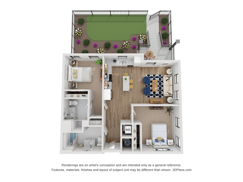 1 Dormitorio, 1 Baño, 620 pies²Disponible AhoraGalería del Modelo
