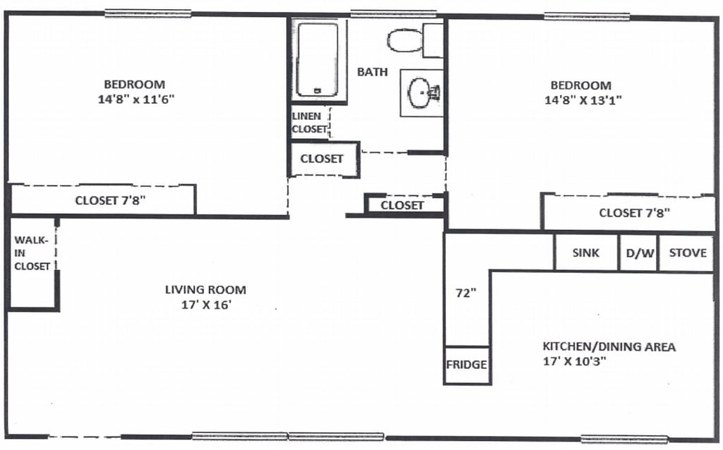 Two Bedroom Model - Imagen 6 Unidad de apartamento: J2Modelo de apartamento: Two Bedroom Model2 Dormitorios, 1 Baño, 920 sq ftDisponible May 15, 2026