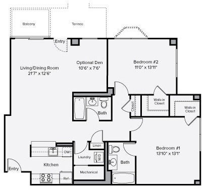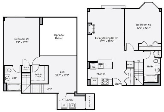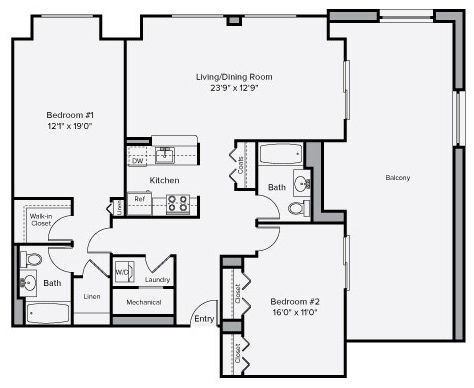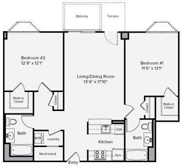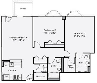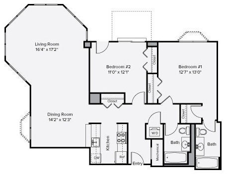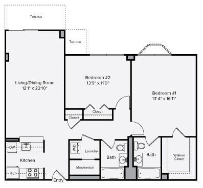 2 Dormitorios, 2 Baños, 985 pies²Galería del Modelo
