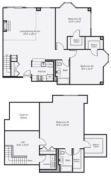 1 Dormitorio, 1 Baño, 977 pies²Galería del Modelo