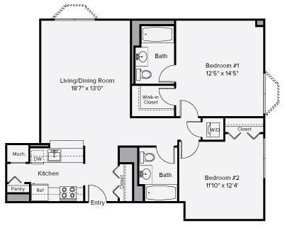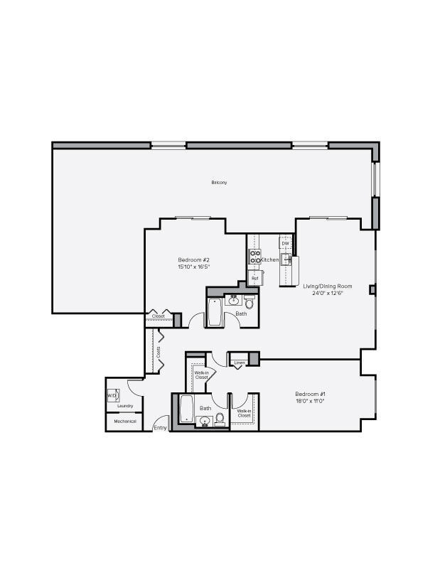 1 Dormitorio, 1 Baño, 1161 pies²El más grandeEsta opción tiene las unidades más grandes para este modeloGalería del Modelo