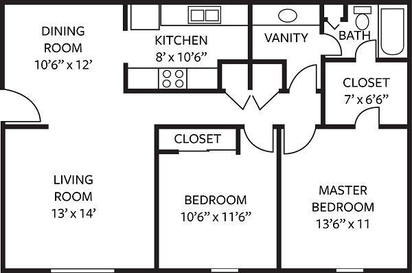 2 Dormitorios, 1 Baño, 920 pies²Disponible AhoraGalería del Modelo