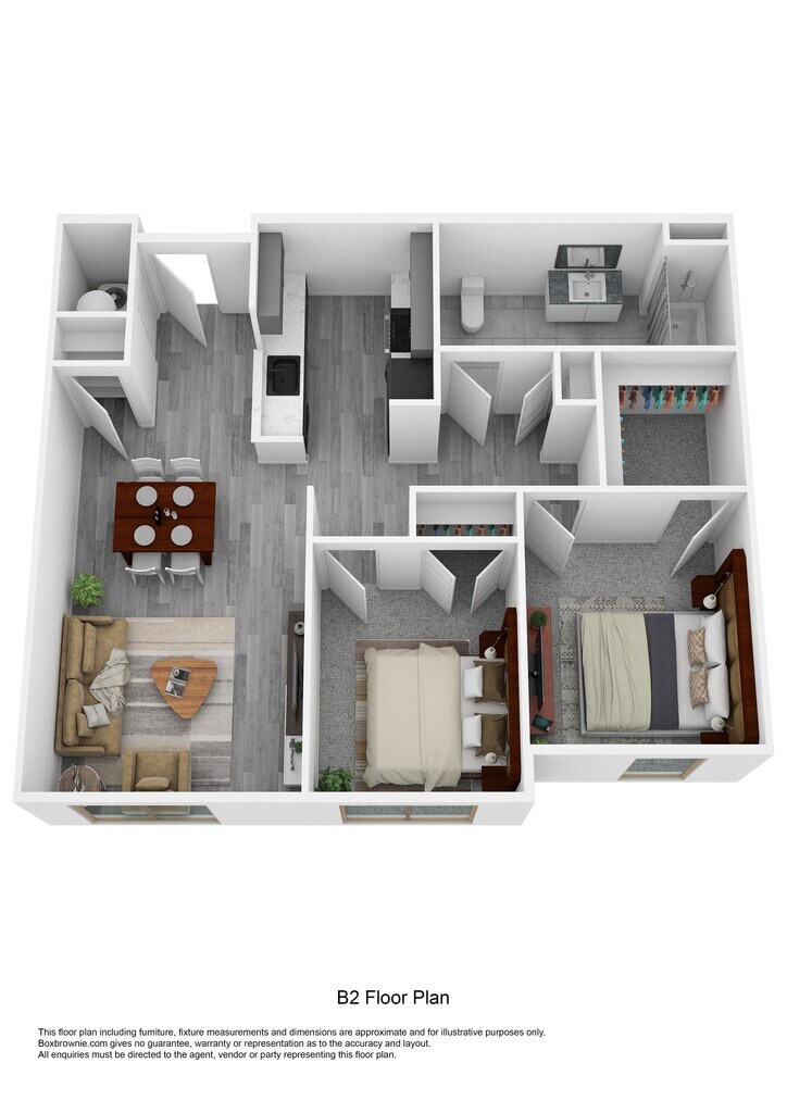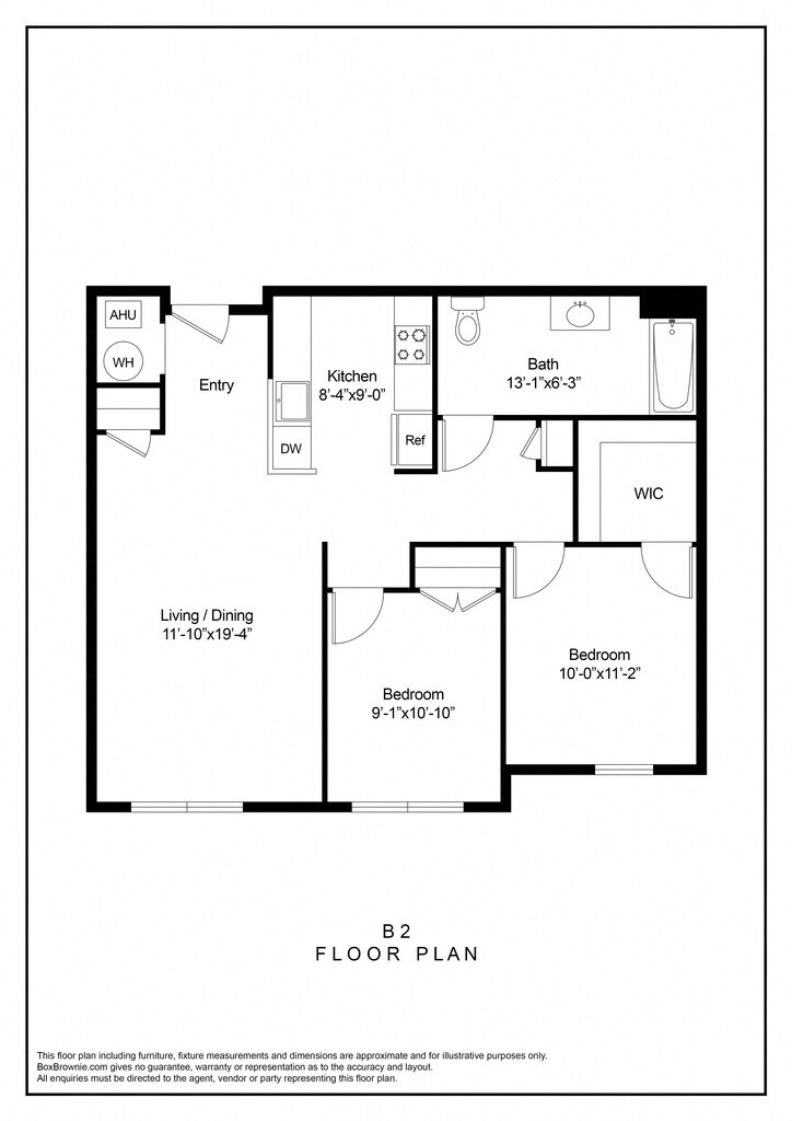B1 - Two Bedroom - Plano 2 Unidad de apartamento: 410Modelo de apartamento: B1 - Two Bedroom2 Dormitorios, 1 Baño, 854 sq ftDisponible AhoraB2 - Two Bedroom