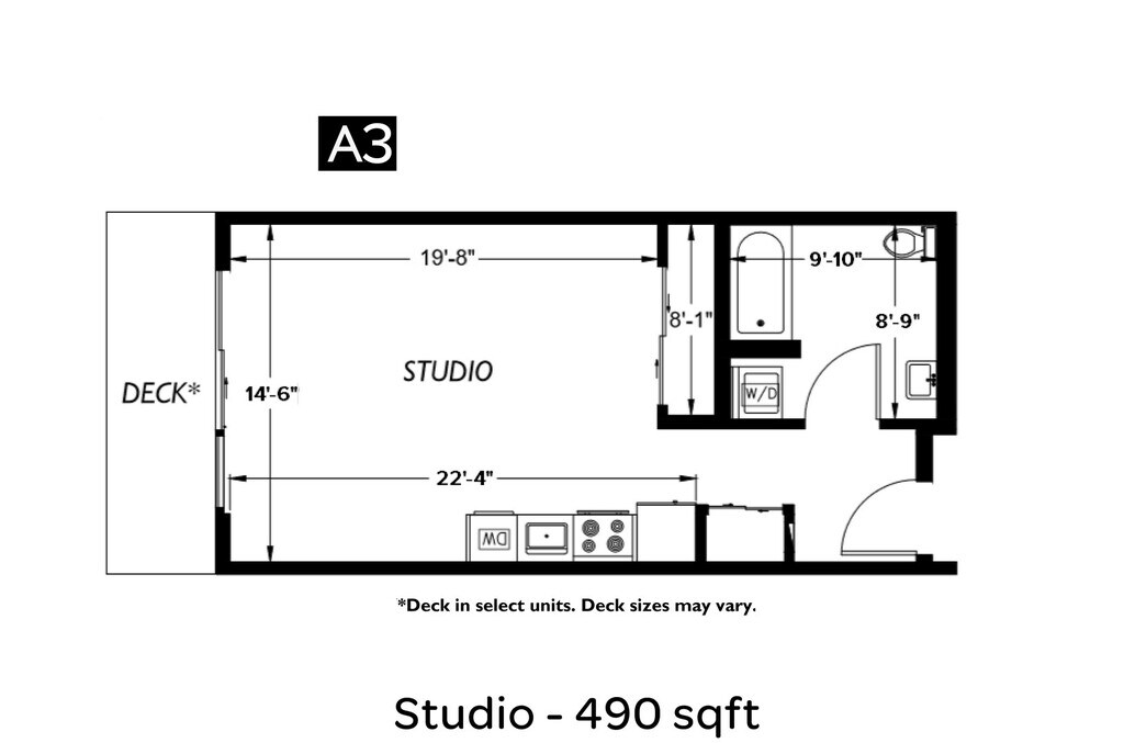 Estudio, 1 Baño, 420 pies²Disponible AhoraGalería del Modelo