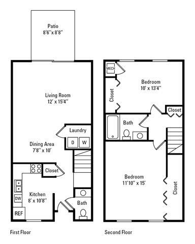 Two Bedroom 1.5 Bath- 970 sqft - Plano 2 Two Bedroom 1.5 Bath Townhome-980 sqft