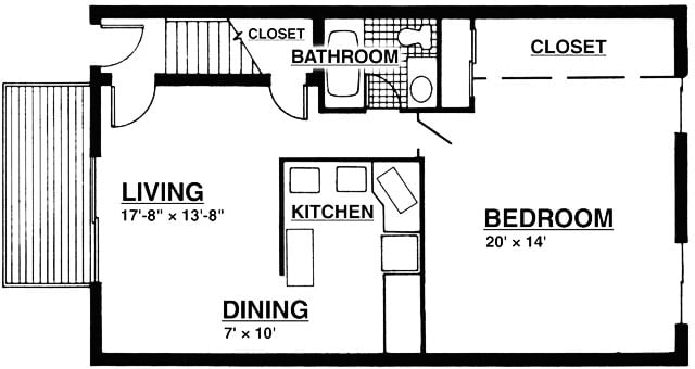 1 Dormitorio, 1 Baño, 798 pies²Galería del Modelo