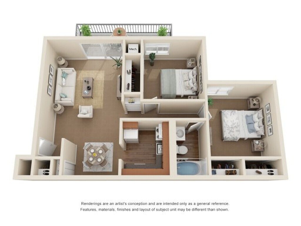 1 Dormitorio, 1 Baño, 650 pies²Disponible AhoraGalería del Modelo