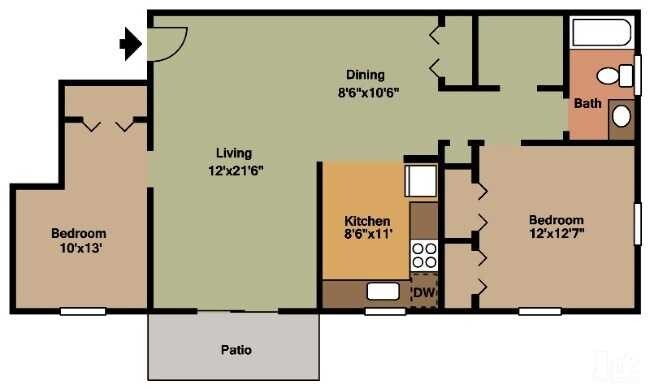 2 Dormitorios, 1 Baño, 901 pies²Galería del Modelo
