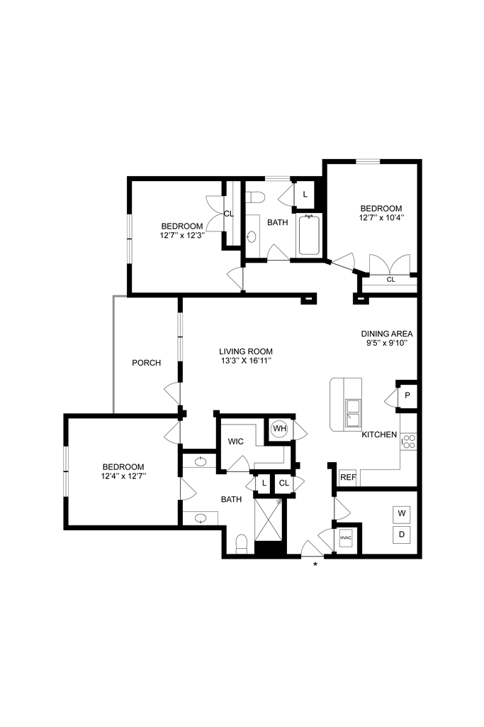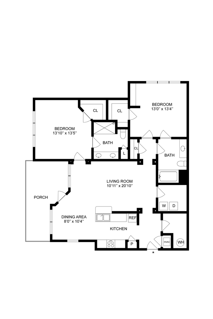 Modelo de apartamento: A1BDesde $1,4351 Dormitorio, 1 Baño, 865 sq ftDisponible Ahora![]()