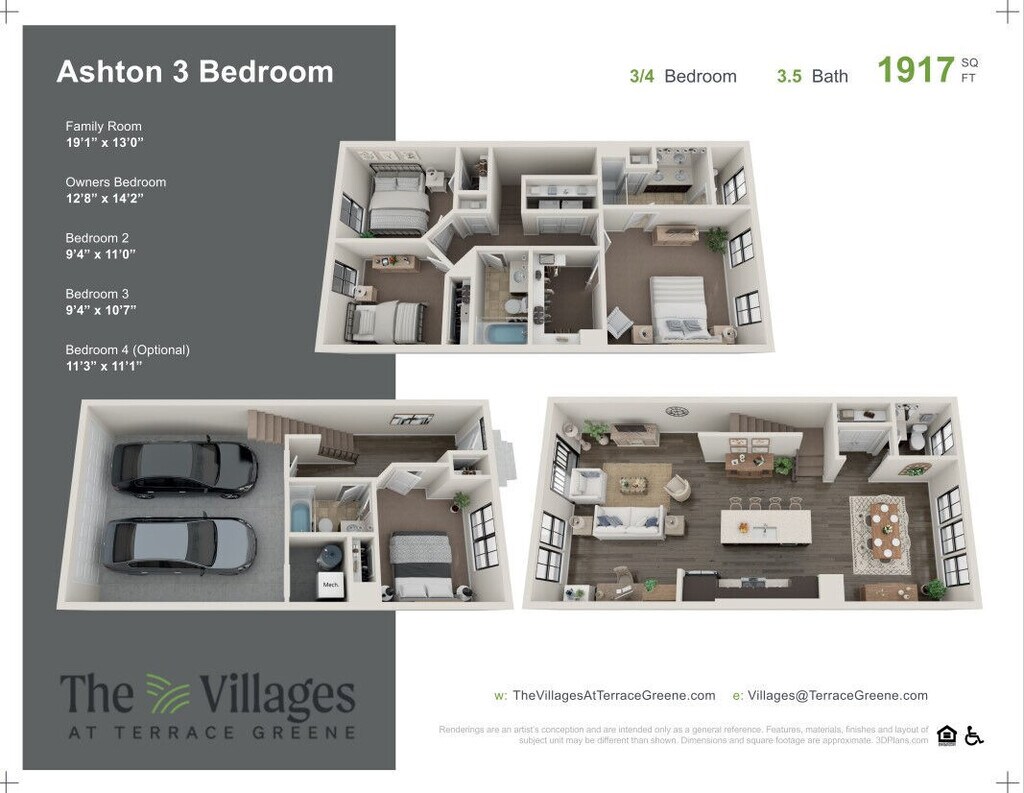 El rango de alquiler de Apartamentos 1 dormitorios a 4 dormitorios en The Villages at Terrace Greene van desde $2,799 a $2,999