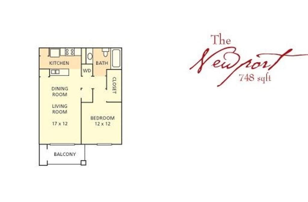 Modelo de apartamento: 1BR$1,4961 Dormitorio, 1 Baño, 748 sq ftDisponible June 13, 2026PlanosFotos![]()