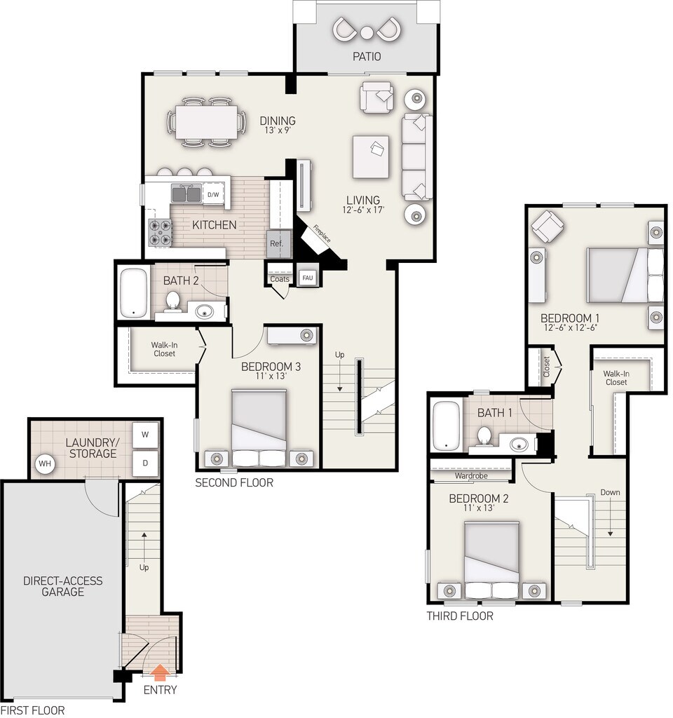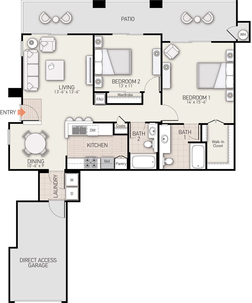 Plan I - Plano 1 Unidad de apartamento: 302Modelo de apartamento: Plan IDesde $5,2552 Dormitorios, 2 Baños, 1243 sq ftDisponible AhoraPlan D