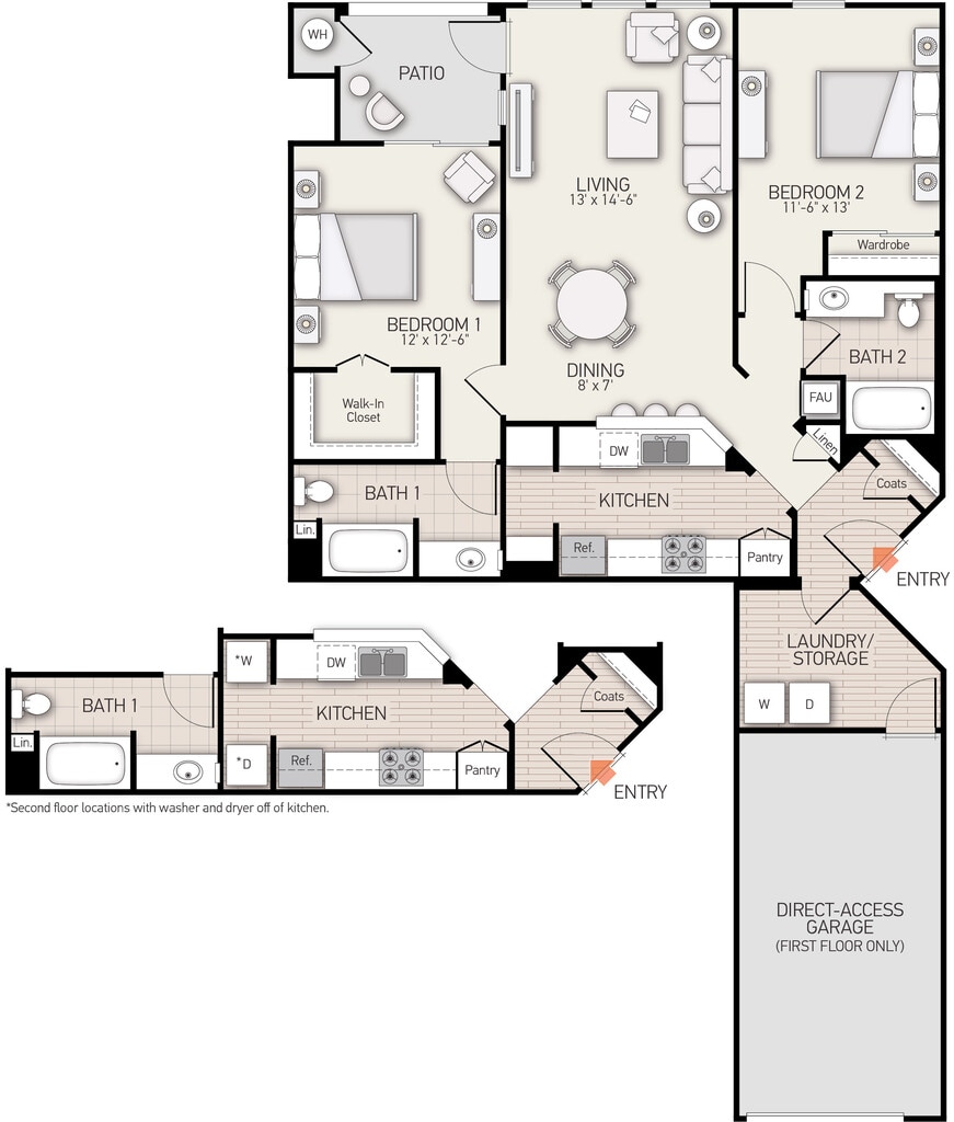 2 Dormitorios, 2 Baños, 1243 pies²Disponible AhoraGalería del Modelo