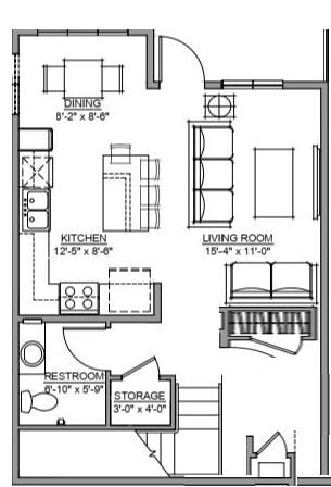 1 Dormitorio, 1 Baño, 634 pies²Galería del Modelo