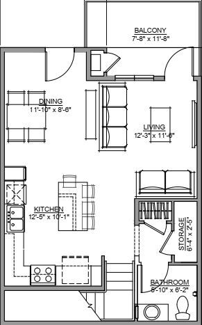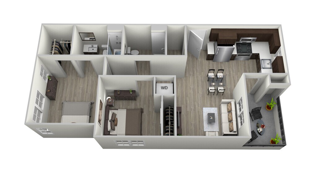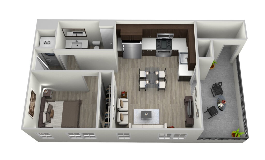 1 Dormitorio, 1 Baño, 784 pies²Disponible AhoraEl más grandeEsta opción tiene las unidades más grandes para este modeloGalería del Modelo