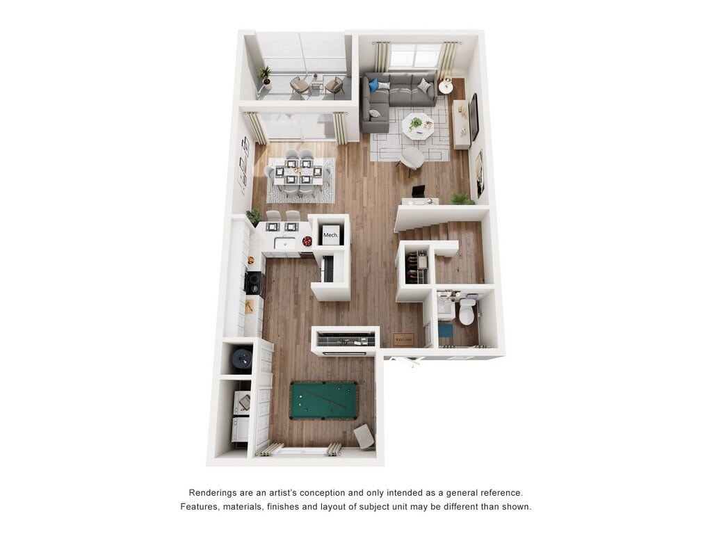 1 Dormitorio, 1 Baño, 860 pies²Disponible AhoraGalería del Modelo
