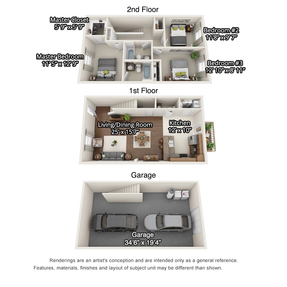 Ver Planos No Disponibles2 Bedroom Townhome with Garage