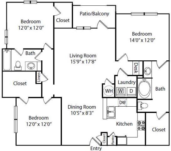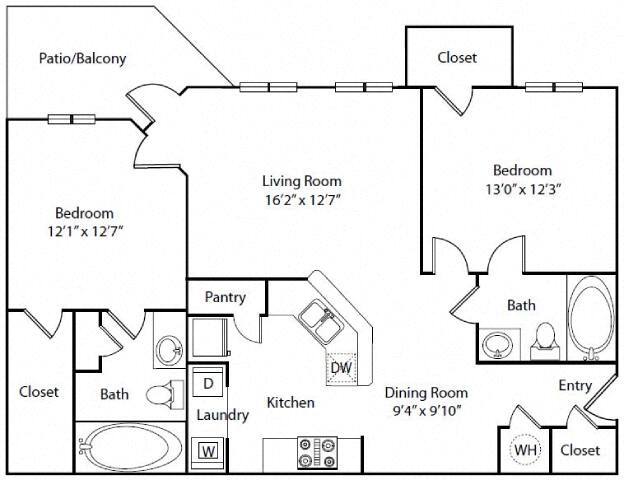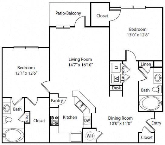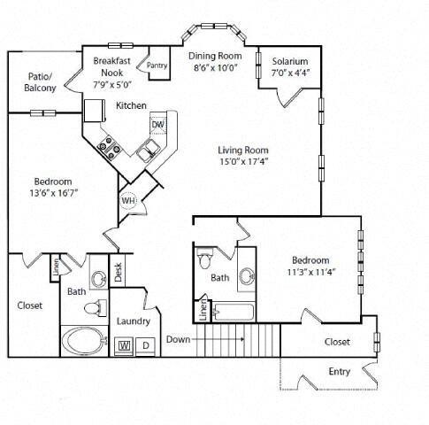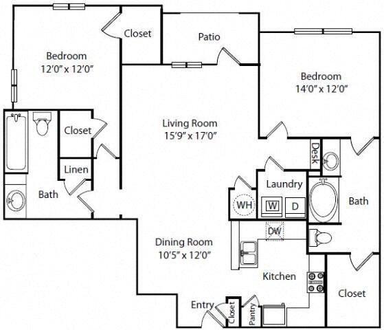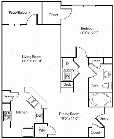 Modelo de apartamento: 1EDesde $1,1731 Dormitorio, 1 Baño, 880 sq ftDisponible Ahora![]()