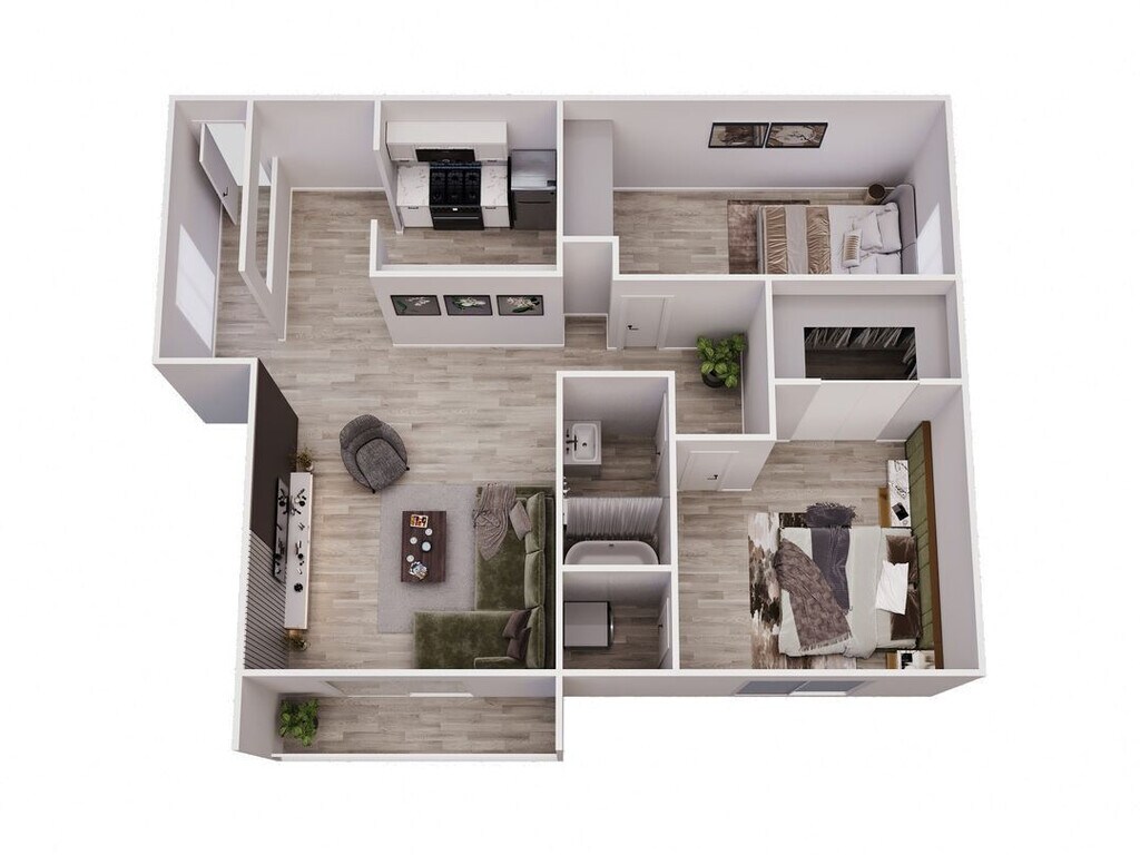 2 Dormitorios, 1 Baño, 975 pies²Galería del Modelo