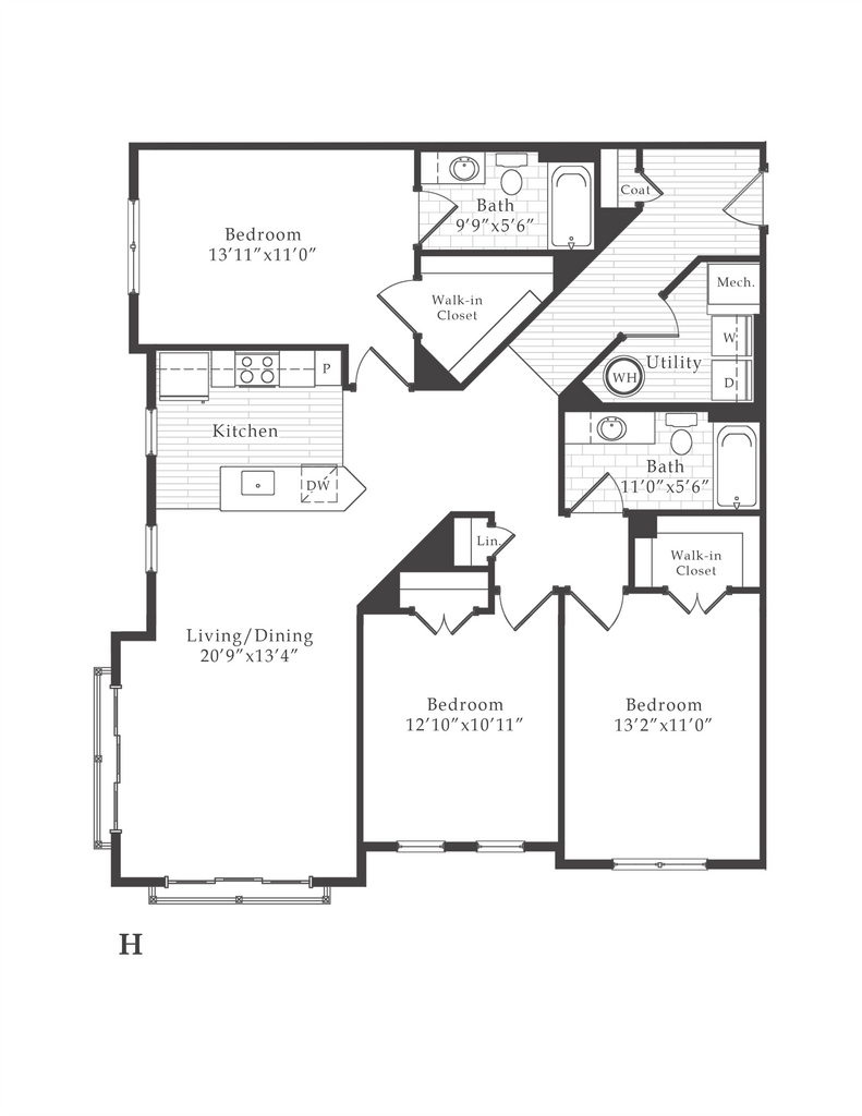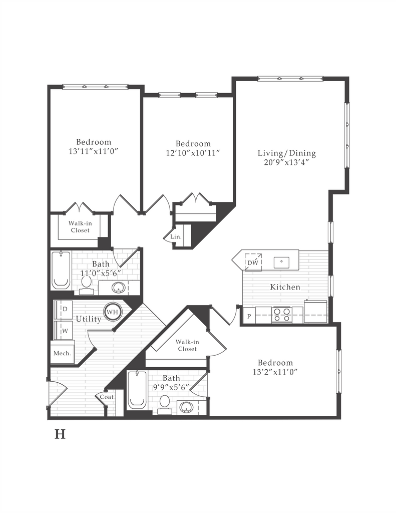 Modelo de apartamento: 1 Bed/1 Bath-B1$2,5801 Dormitorio, 1 Baño, 843 sq ftDisponible December 20, 2025![]()