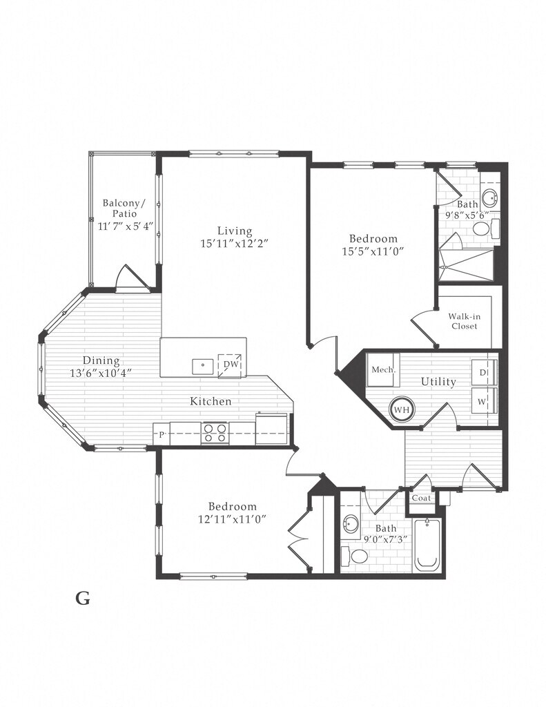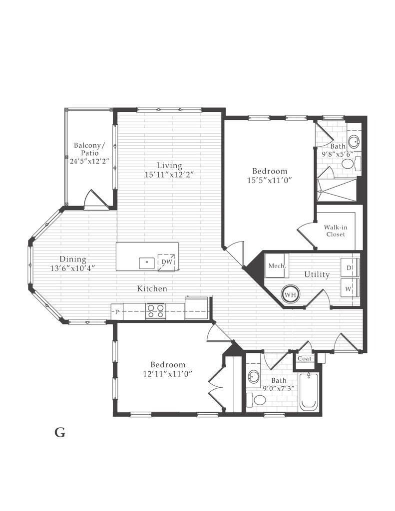Modelo de apartamento: 1 Bed/1 Bath-B2Desde $2,4891 Dormitorio, 1 Baño, 841 sq ftDisponible AhoraPlanosFotos![]()