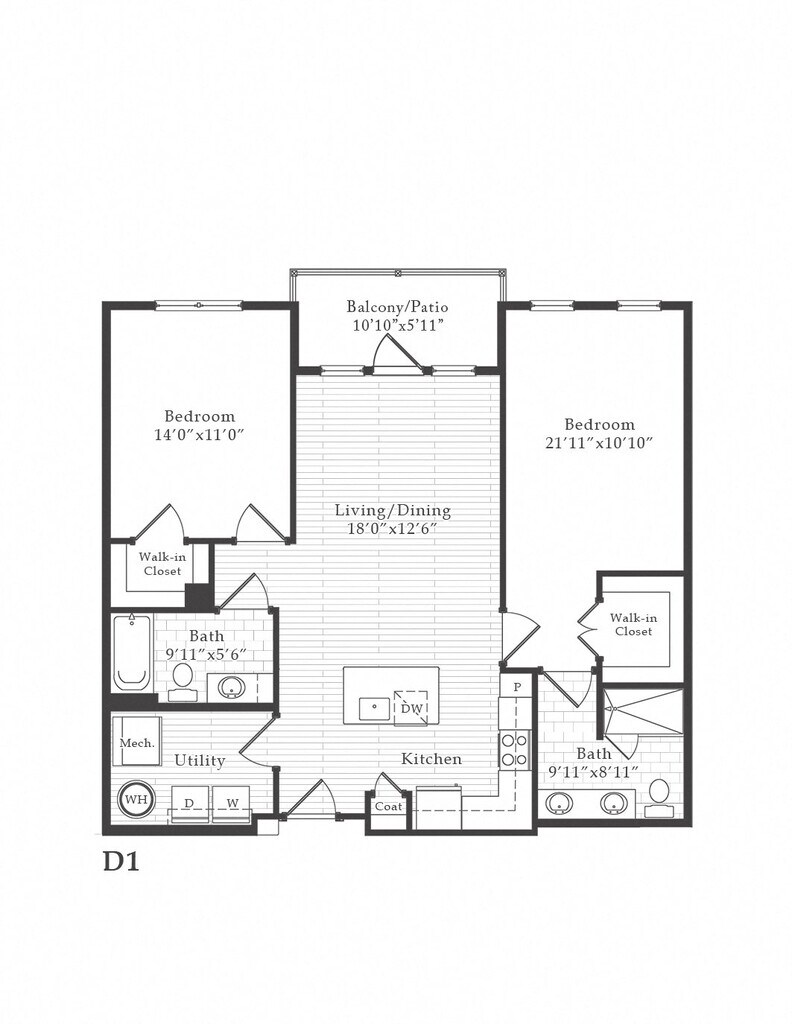 1 Dormitorio, 1 Baño, 843 pies²Disponible Dec 20El más grandeEsta opción tiene las unidades más grandes para este modeloGalería del Modelo