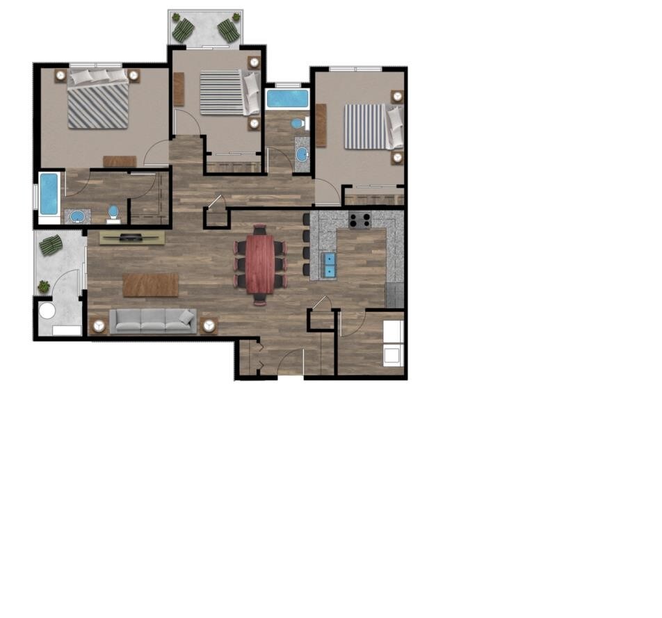 Unidad de apartamento: 3Modelo de apartamento: 3 Bed / 2 Bath$1,8353 Dormitorios, 2 Baños, 1299 sq ftDisponible Ahora