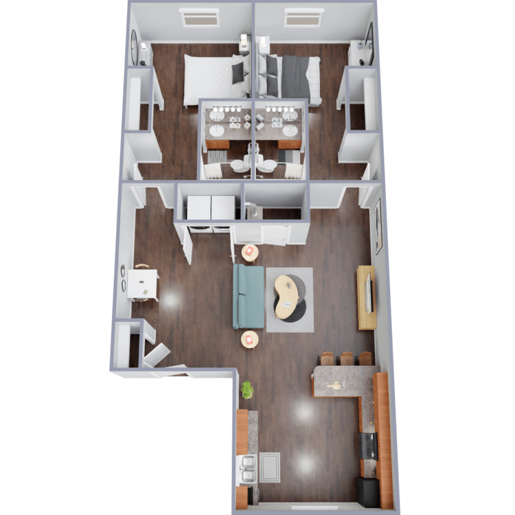 2 Dormitorios, 2 Baños, 755 pies²Galería del Modelo