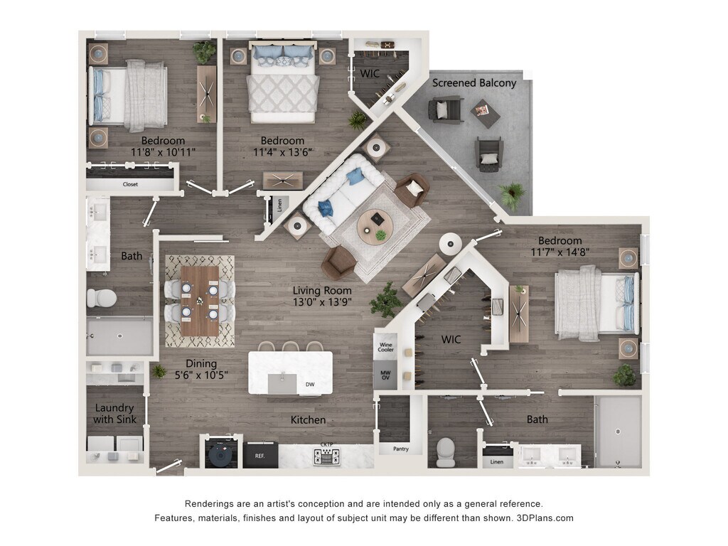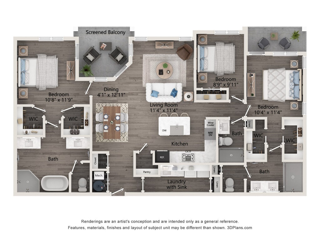Modelo de apartamento: A4-DDesde $2,6791 Dormitorio, 1 Baño, 1103 sq ftDisponible Ahora![]()