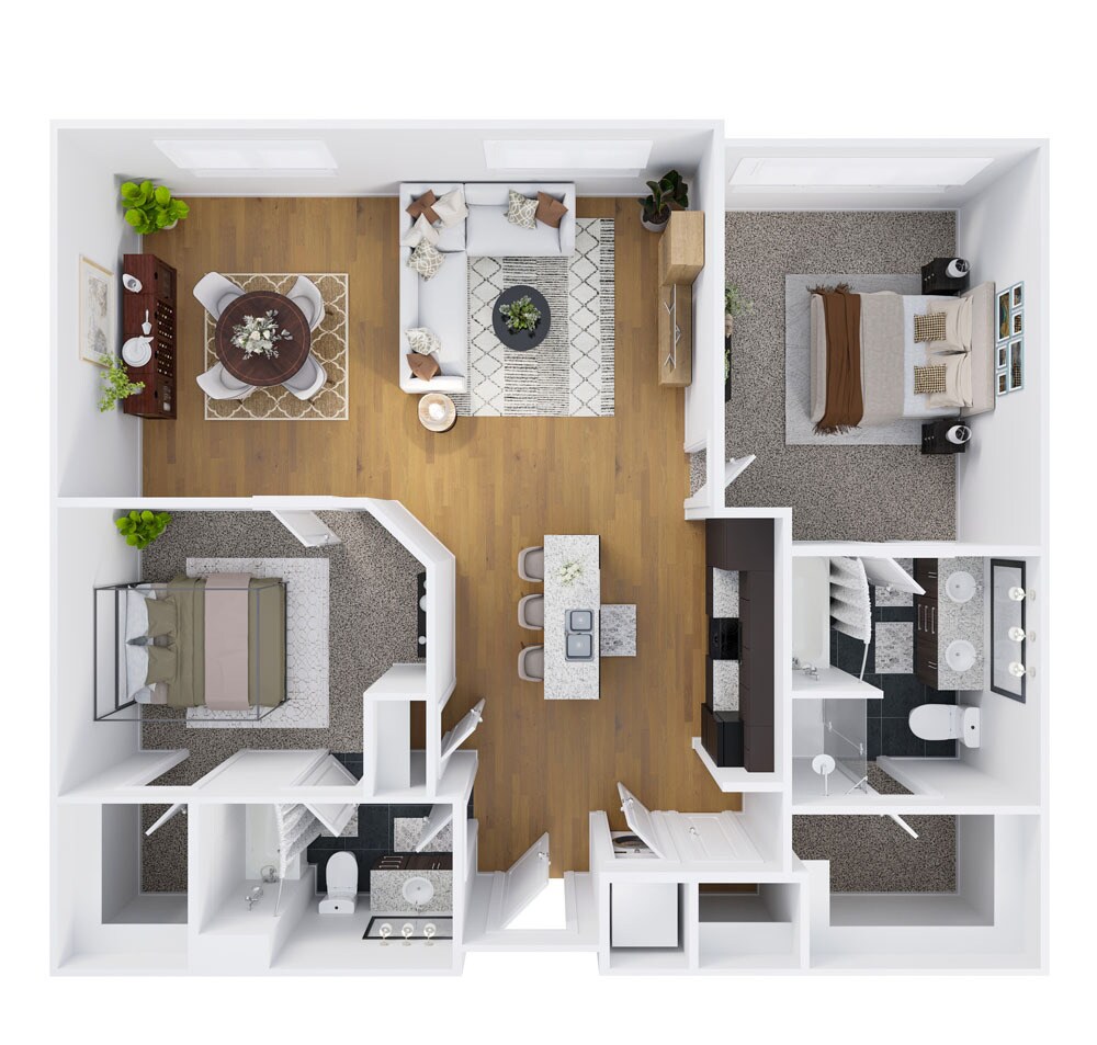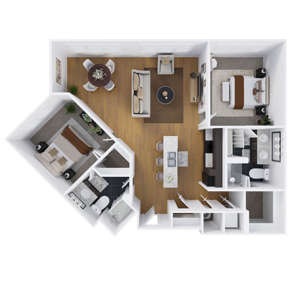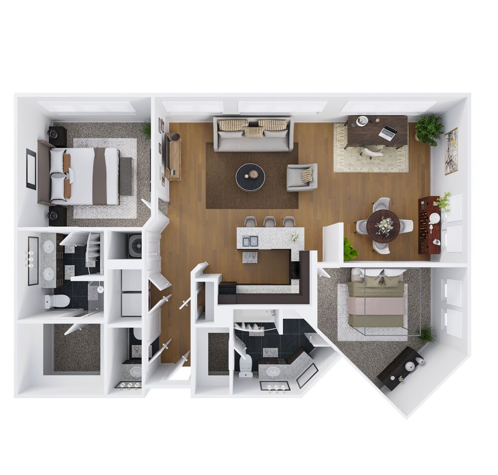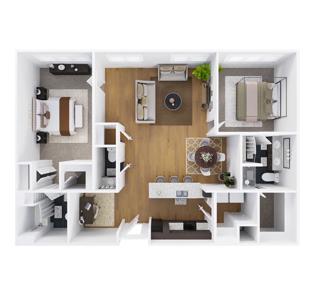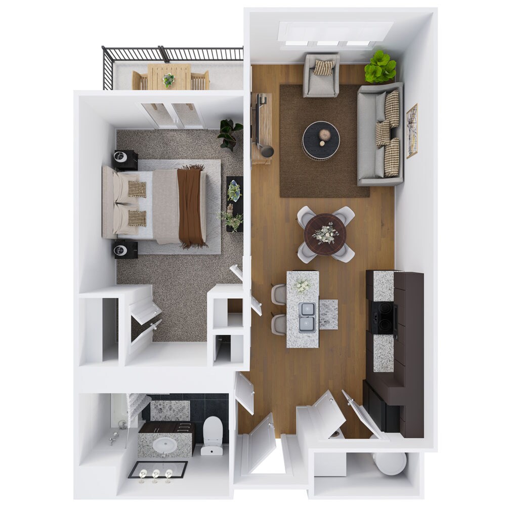 1 Dormitorio, 1 Baño, 845 pies²Disponible AhoraGalería del Modelo
