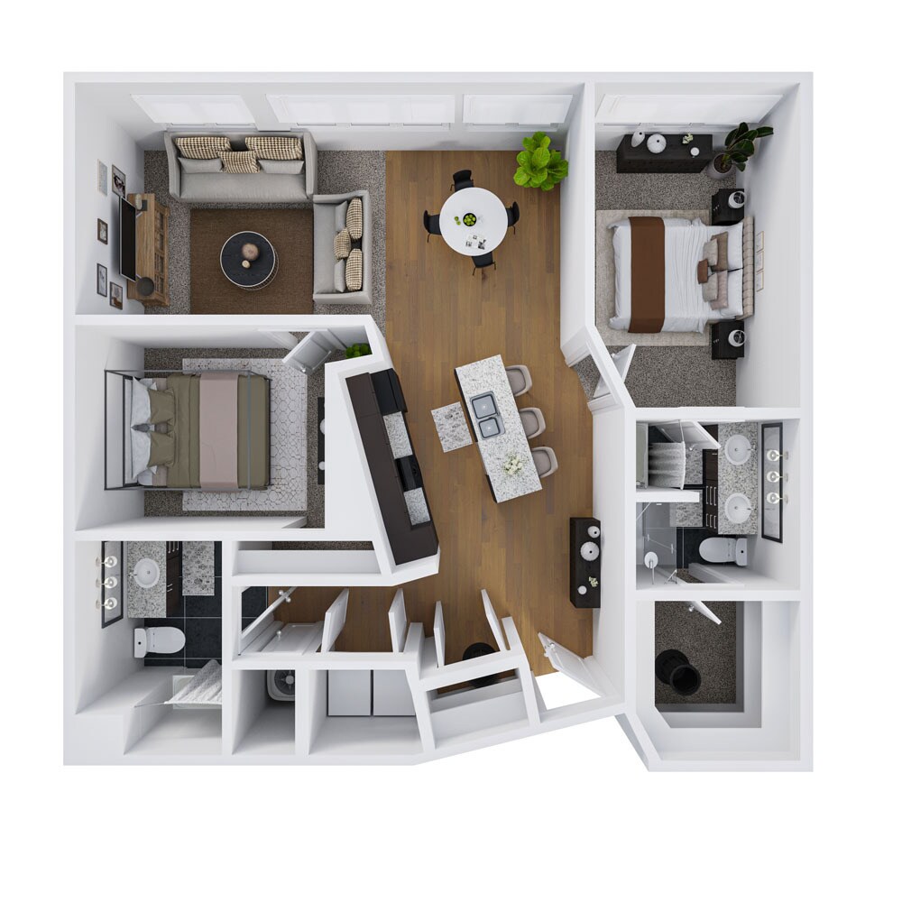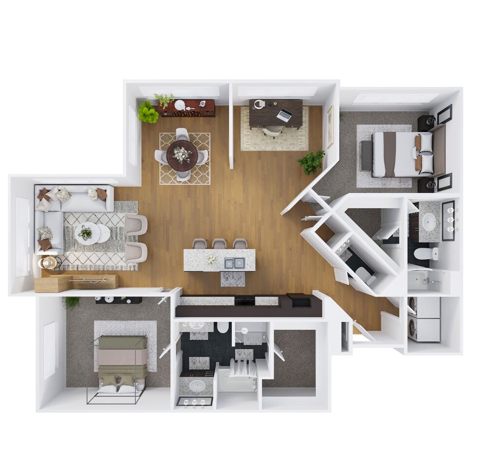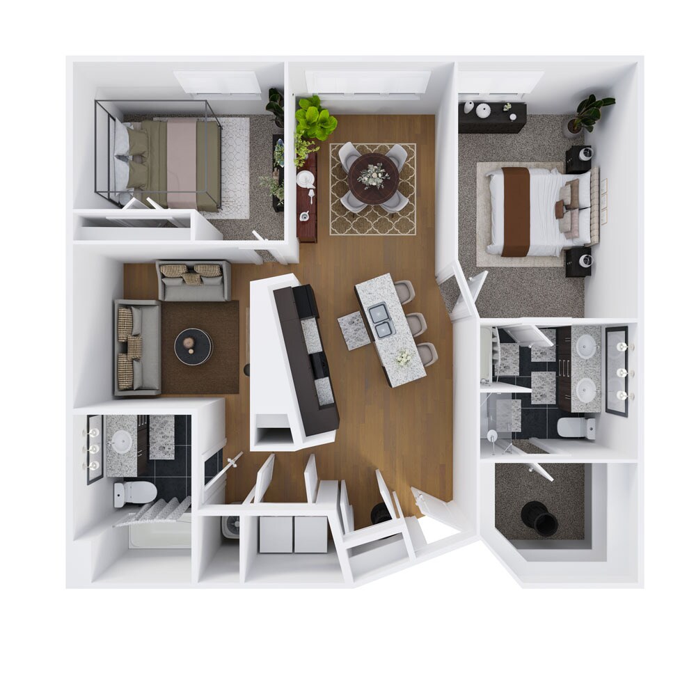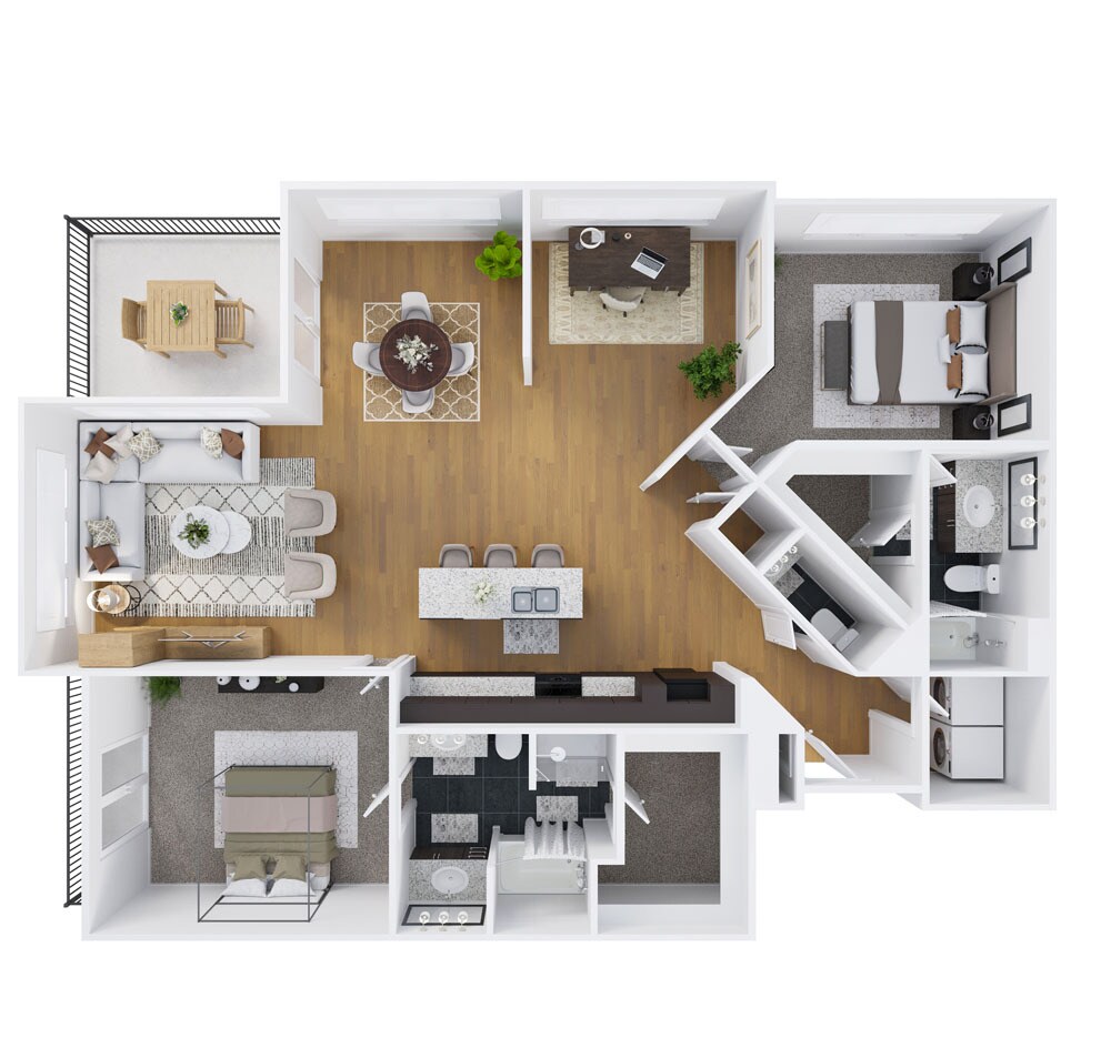 1 Dormitorio, 1 Baño, 845 pies²Disponible AhoraGalería del Modelo