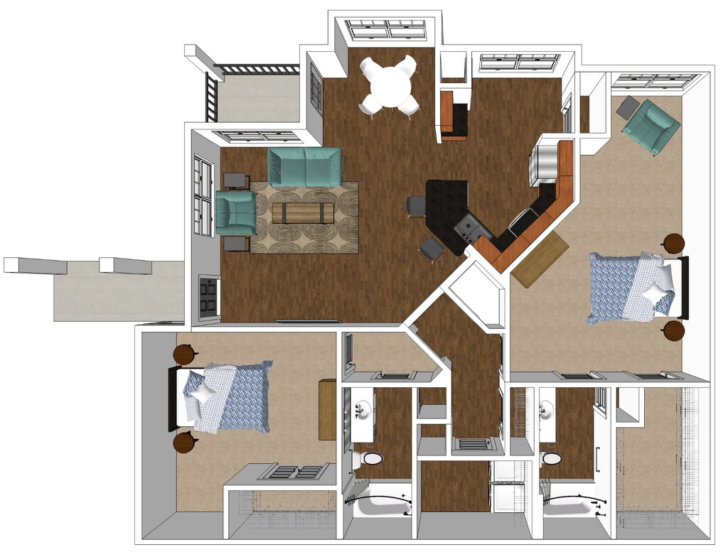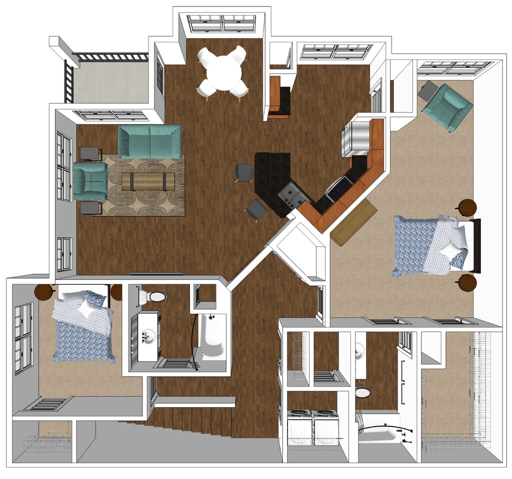 2 Dormitorios, 2 Baños, 1490 pies²El más grandeEsta opción tiene las unidades más grandes para este modeloGalería del Modelo