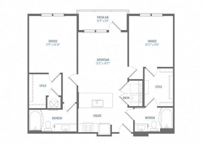 2 Dormitorios, 2 Baños, 960 pies²Disponible Nov 22El más grandeEsta opción tiene las unidades más grandes para este modeloGalería del Modelo
