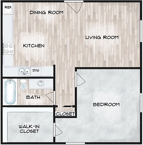 1 Dormitorio, 1 Baño, 650 pies²Disponible AhoraGalería del Modelo