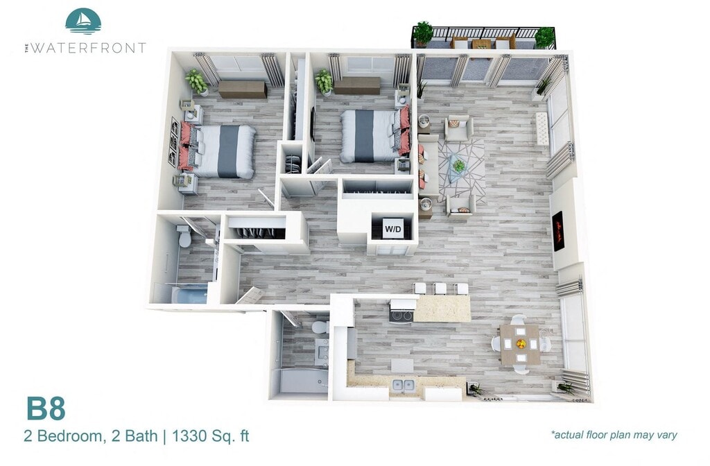 The Waterfront ofrece apartamentos de 2 Dormitorios desde $5,350 con 1,330 pies cuadrados. Aquí está el precio actual y la disponibilidad: